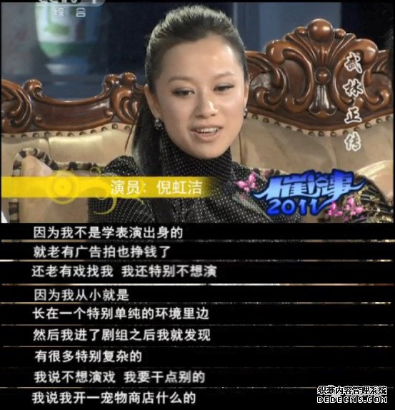 在《三国页游》播出后,剧组人员曾一起做客《小崔说事》,在聊到每个人的出道经历时,倪虹洁说:“一出道就拍广告,也有钱赚,并不想当演员,而且剧组里什么人都有,很复杂,自己处理不来。”