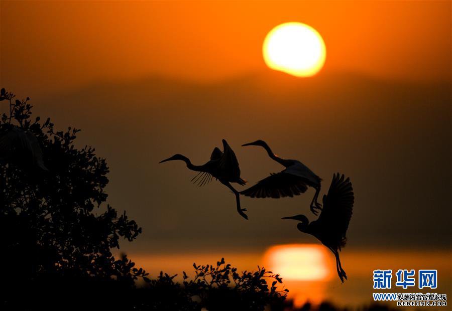 12月11日,好玩页游,水鸟在深圳湾畔觅食。
