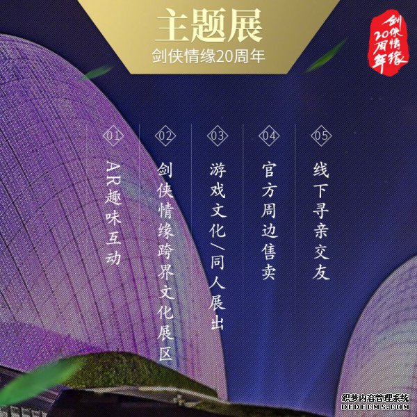 剑侠情缘20周年庆典当天,外场将开启主题展,为各位大侠准备了丰富的场外活动。剑侠情缘丰富跨界文化、游戏文化、同人文化展出,线下寻亲、AR趣味互动同步开启,还有官方周边售卖,一起来约吧!