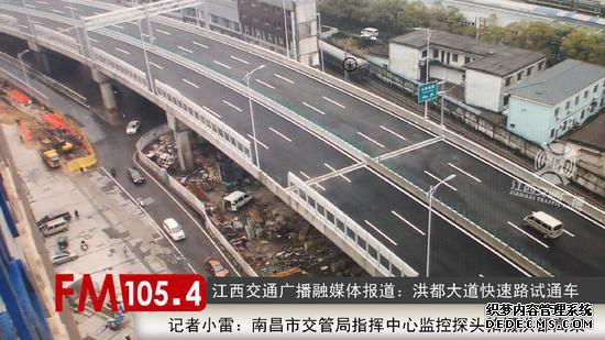 新浪江西微博直播南昌洪都大道高架开通体验式报道 @江西交通广播:#洪都大道高架试通车# 今天上午8点58分,南昌洪都大道快速路主线正式通车。洪都高架全长7.6公里,限速80公里/时,从英雄大桥到九洲高架正常行驶大约8分钟。 洪都大道主线高架匝道共有16条,,今天有3条匝道开通:省环保厅处由南往北下桥匝道、阳明路口处由南往北上桥匝道、百瑞酒店处由北往南下桥匝道。
