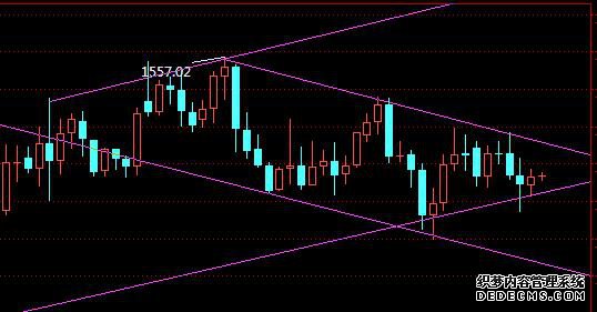 日线图中,根据极限下跌趋势线来看,现阶段的行情上方压力随时时间的变化,已经逐步下移到了1510美元,只要这里能有效的突破,那么上方多头空间会扩大到1530/1550美元;