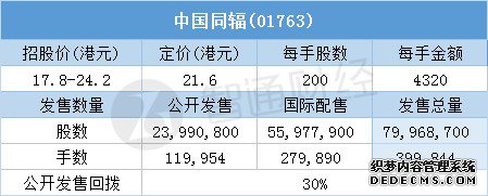 7月5日,中国同位素及辐照技术应用领域的领军企业中国同辐(01763)配股结束。本次配股招股价区间为17.8-24.2港元,最终定价21.6港元,每手4320港元。