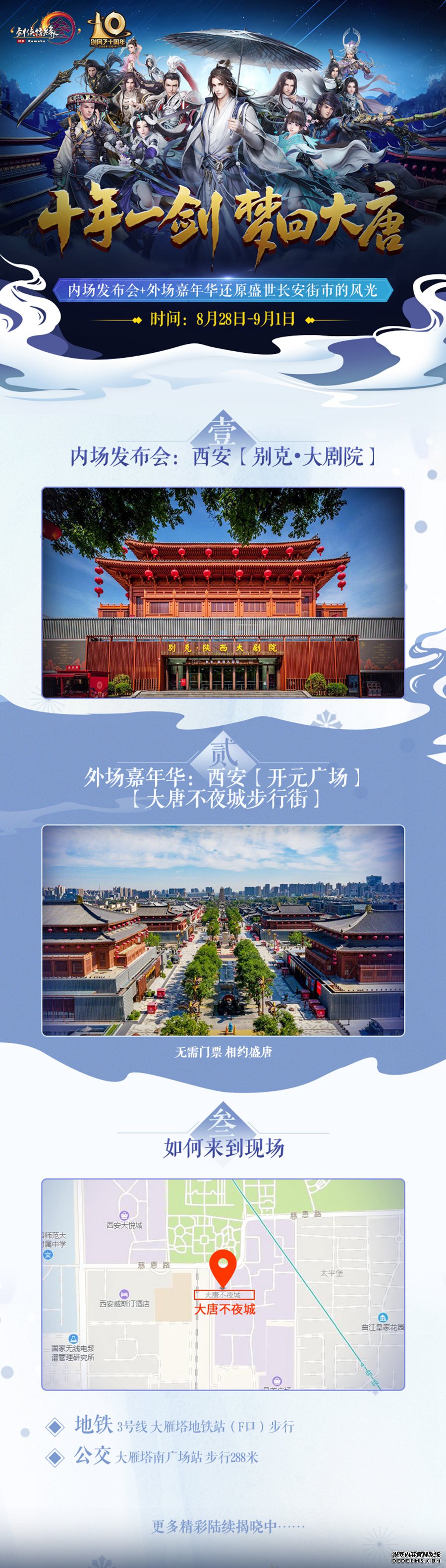 十年一剑,梦回大唐!《网页私服游戏》十周年庆典定址大唐故都——陕西西安!并将与陕西历史博物馆、大唐芙蓉园等知名景区深度联动,为侠士们打造一场空前绝后的周年庆典!《网页私服游戏》十周年外场嘉年华活动今日正式官宣!本次嘉年华将于8月28日-9月1日在西安开元广场、大唐不夜城步行街盛大开启!持续5天的狂欢盛宴,全程无需门票,带你重游“大唐盛世”的街道风光!